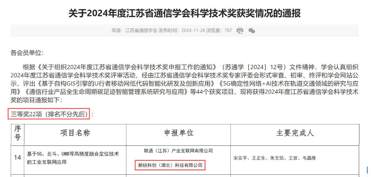 新銳科創(chuàng)(湖北)科技有限公司攜手聯(lián)通(江蘇)產(chǎn)業(yè)互聯(lián)網(wǎng)有限公司,憑借“基于5G、北斗、UWB等高精度融合定位技術(shù)的工業(yè)互聯(lián)網(wǎng)應(yīng)用”項(xiàng)目成功摘得三等獎(jiǎng)。