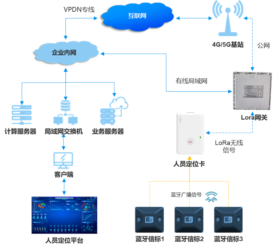 LoRa技術:憑借遠距離傳輸與低功耗特性,覆蓋廠區室外區域(如原料堆場、運輸通道),信號穿透力強,即使在高密度設備遮擋環境下仍能保持穩定連接。