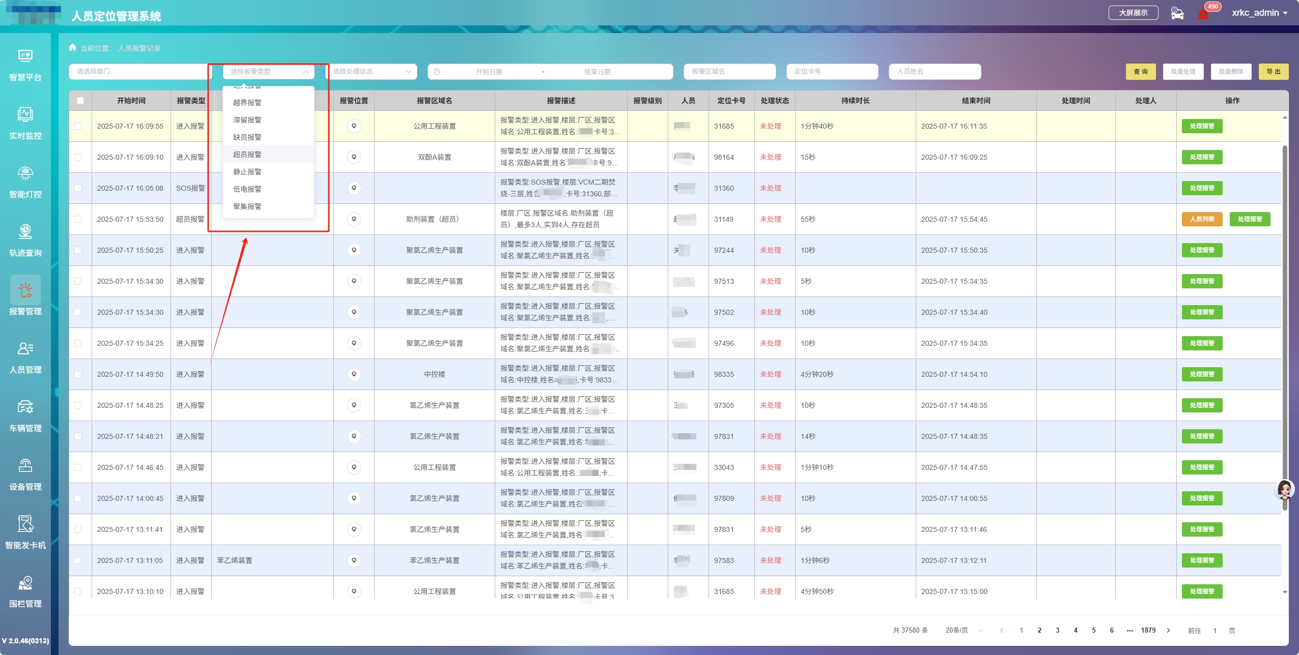 系統具備多層次的主動安全告警功能,從人員安全到設備防護形成閉環管控。運維人員佩戴的定位標簽集成了多種安全感知模塊,可實現靜止告警、聚集告警、SOS緊急求救等功能。同時,系統可基于定位數據設置電子圍欄,在高壓設備區、未驗收風機等危險區域劃定虛擬禁區,當人員或車輛違規闖入時,系統立即發出聲光告警并鎖定目標位置,從源頭規避安全風險。