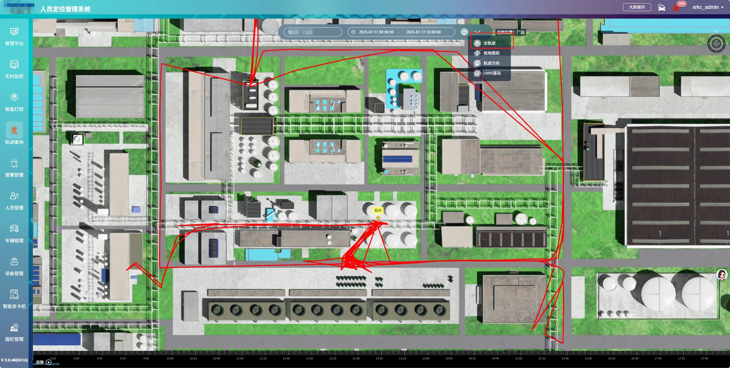 人車定位系統通過精準數據賦能實現調度智能化:在人員管理層面,系統可通過熱力圖直觀呈現各區域人員密度,結合作業需求動態調配人力,避免部分區域人力冗余而部分區域人手不足;在車輛調度層面,管理人員可基于實時位置與任務進度,規劃最優行駛路徑,減少交叉擁堵。