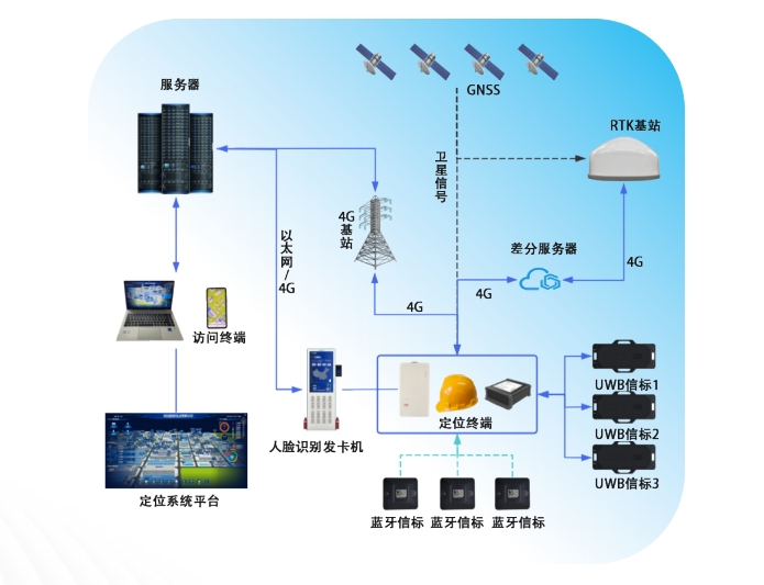 二、4G+藍(lán)牙+UWB+RTK人員定位系統(tǒng)
